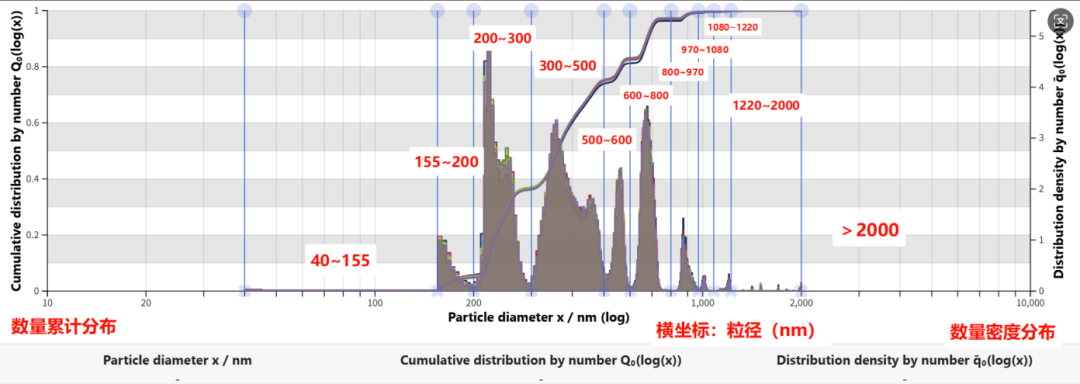 根據(jù)實際分布情況,劃分了11個粒徑區(qū)間,測試下限下探至40nm。